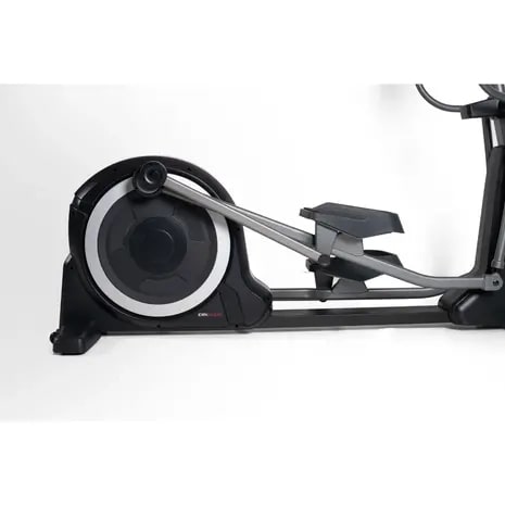 Premium fitnessapparatuur voor een ambitieuze cardiotraining: inductie remsysteem, 20 kg vliegwielmassa, 16 cm afstand tussen de voetpedalen voor een optimale lichaamshouding.
