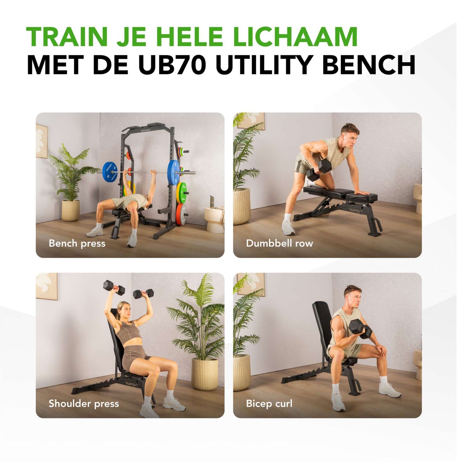 De Tunturi UB70 is ideaal te combineren met andere krachtapparatuur, zoals de Tunturi PR60 Power Rack of de Tunturi SM70 Smith Machine. Zo creëer je een complete trainingsopstelling voor een full-body workout met maximale efficiëntie.
