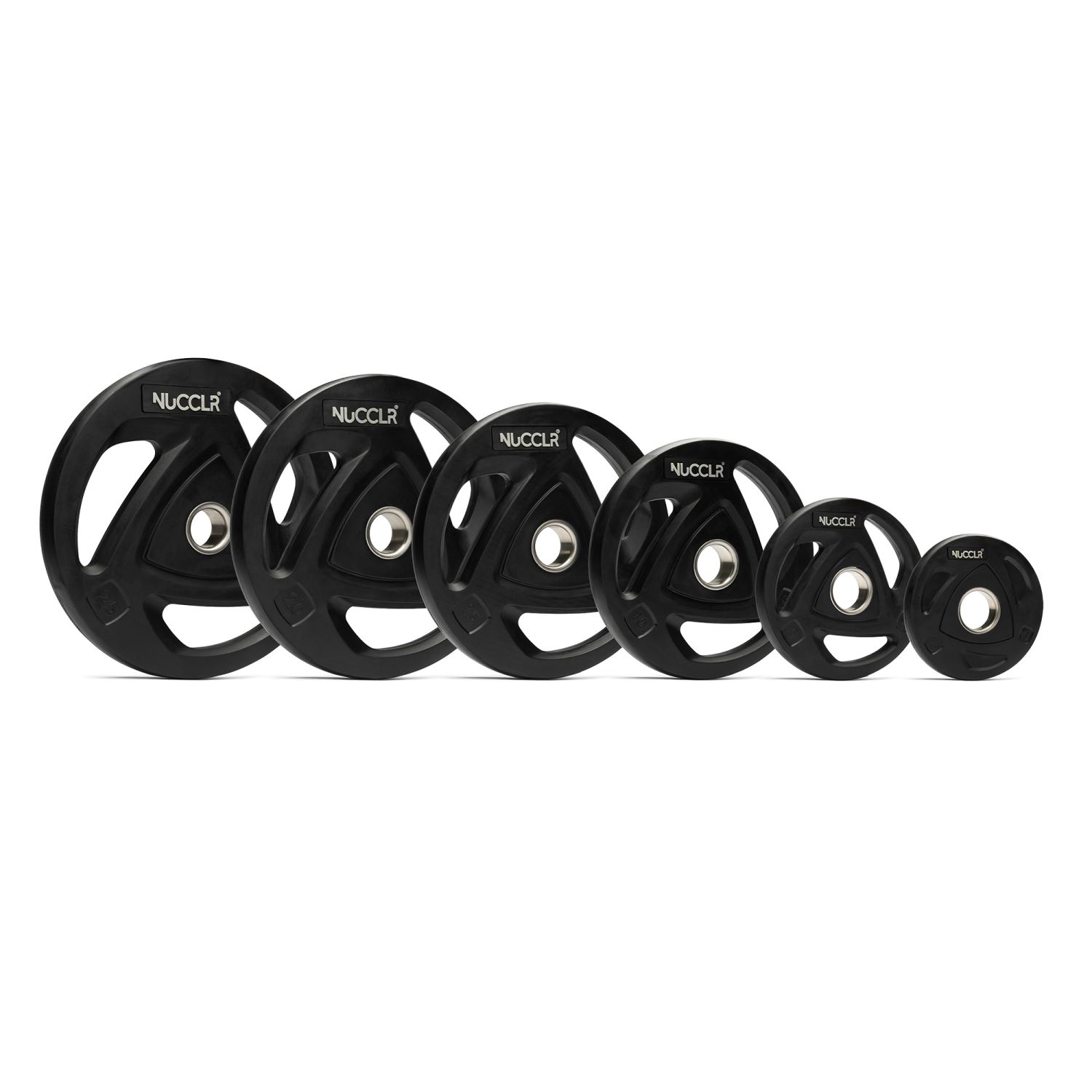 Home | Krachtapparatuur > Halterschijven > NUCCLR olympic halterset rubber 120 KG
