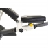 De bank heeft een leg developer, preacher curl pad en een opslagplaats voor de precher curl pad of leg developer wanneer deze niet in gebruik is.