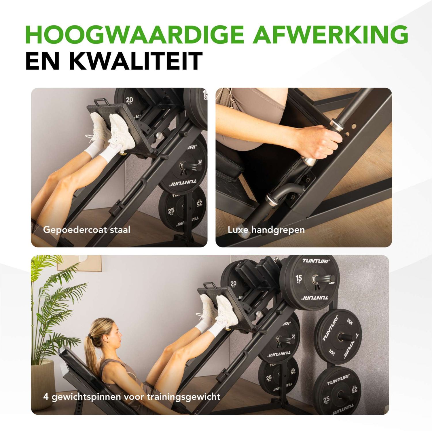 De Tunturi LP60 Leg Press/Hack Squat biedt vier krachtige beenoefeningen in één compact en professioneel toestel.