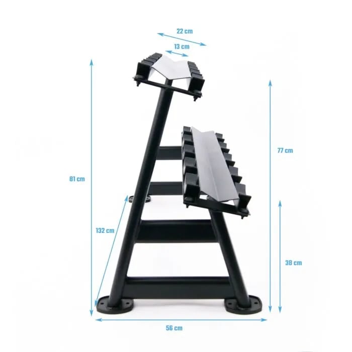 -Capaciteit voor 5 dumbbellparen – Het rek van 132 cm lang biedt ruimte voor vijf volledige sets.