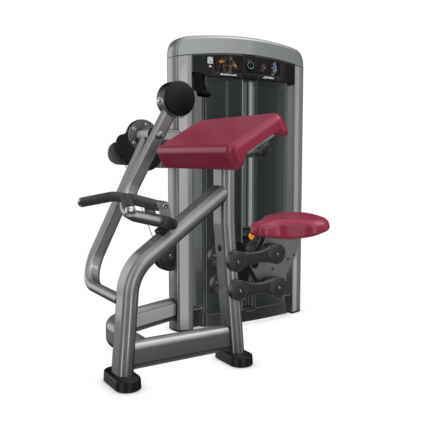 Met de Life Fitness Insignia Series Biceps Curl – Dependent ervaar je gecontroleerde en stabiele bicepstraining dankzij de schuin geplaatste armsteunen.
