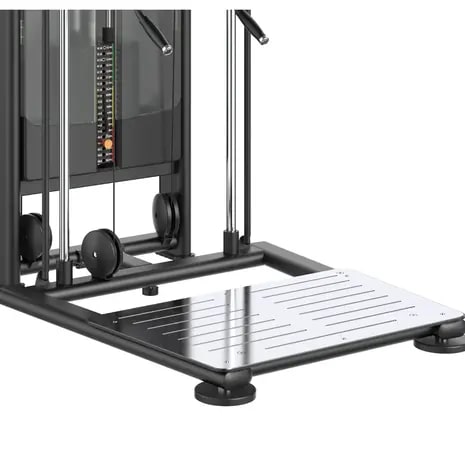 Het hoogwaardige pulleysysteem van POM-materiaal met PREMIUM GRADE lagers garandeert een soepele en stille werking, terwijl de sterke stalen kabels (5 mm) bestand zijn tegen een maximale belasting van 1500 kg. De gewichtstapel van 90 kg met beschermkooi zorgt voor veilige en consistente weerstand.