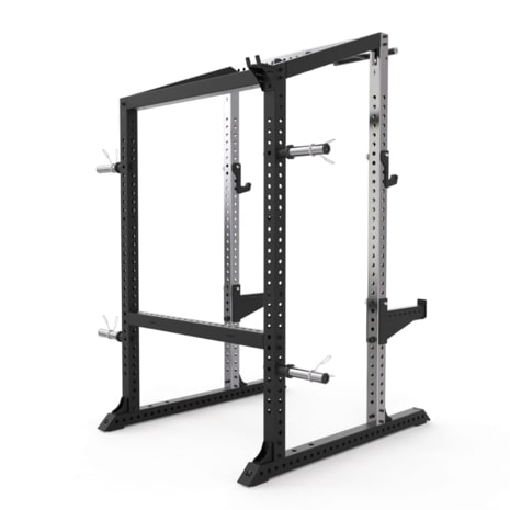 Het rack is opgebouwd uit een heavy-duty stalen frame met buizen van 75x75 mm en een wanddikte van 3 mm, wat zorgt voor ongekende stabiliteit en duurzaamheid – zelfs bij de zwaarste belasting. De verstelbare J-cups met 26 hoogteniveaus (362–1712 mm) maken het mogelijk om elke oefening precies op maat af te stemmen, van squats en presses tot deadlifts en lunges. De UHMW-beschermpads beschermen zowel je halterstang als het frame tegen slijtage.